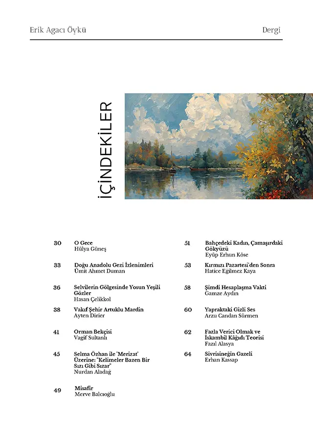 Dergileri okurken yalnızca satın almak ve okumakla kalmazsınız. Bir çok öykü ve edebi metin çeşitliliğini satın almış olursunuz. Beyninize girecek olan bilgilerin ve haznenin çeşitliliğini almış olursunuz. Dolayısıyla kitap ve dergi satın alma işi basit bir alışverişi aşar ve siz beyninizin besinini almış olursunuz. Hangi edebi metine yatırım yaptığınıza yani kendinize dikkat ediniz. Sağlıklı bilgiler dileriz.